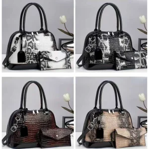 2pcs Conjunto De Bolsa De Mano Con Patrón De Cocodrilo, Bolso De Mano Brillante Para Mujer, Bolso Cruzado De Moda Con Billetera De Embrague